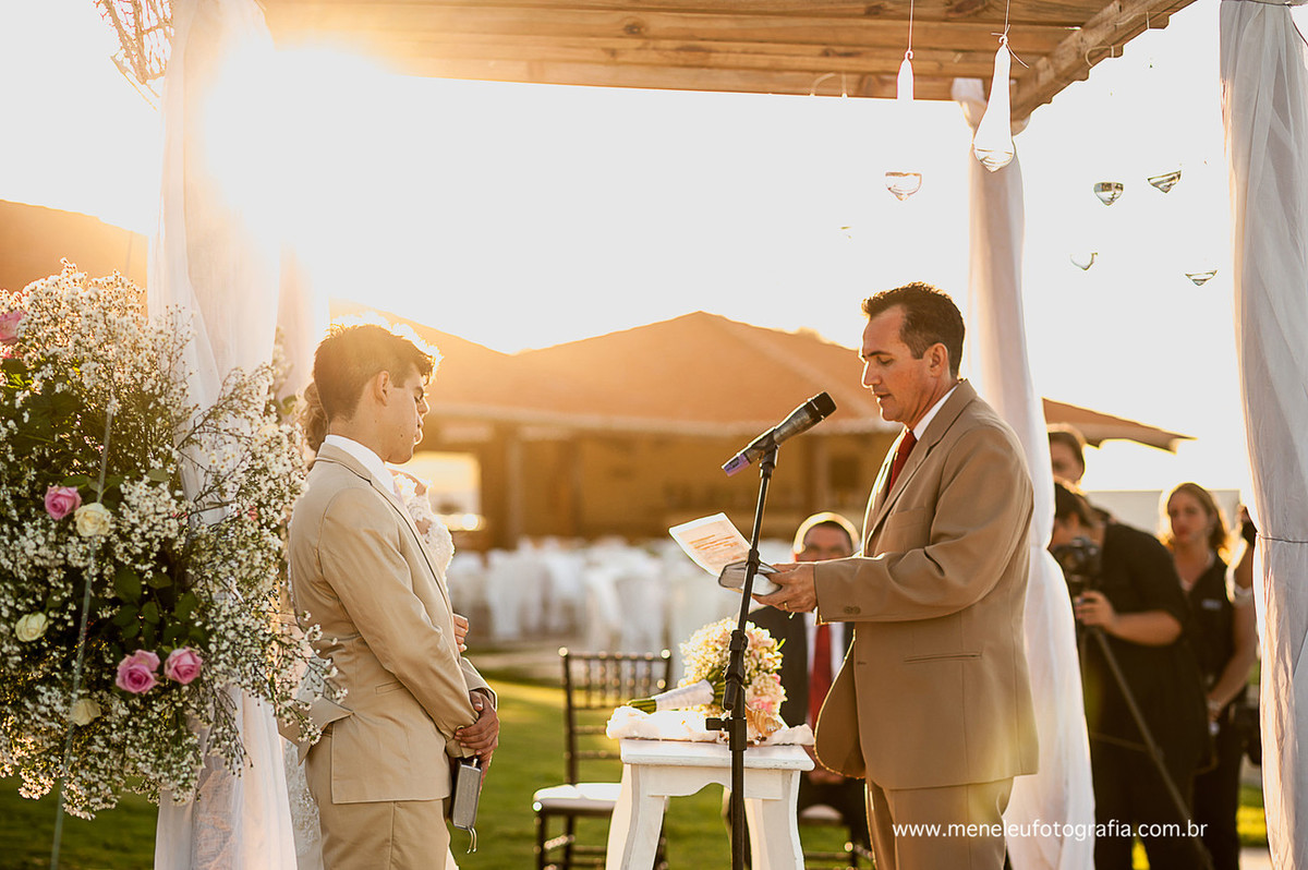 Porque não casar na praia? Com um cenário desses, a família e o seu grande amor ao lado não é preciso muita coisa, não é mesmo? A história do casamento do casal passa pelo típico casamento na praia. Já era de se esperar um espetáculo da natureza nos presenteando com um lindo pôr do sol na praia do Cumbuco no Ceará. Confira os detalhes dessa celebração simples e elegante realizado na Valhal Cumbuco.